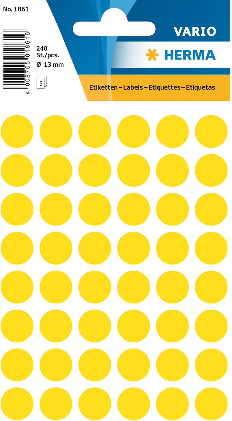 Die HERMA Markierungspunkte in leuchtendem Gelb sind die ideale Lösung für alle, die eine präzise und auffällige Kennzeichnung benötigen. Mit einem Durchmesser von 13 mm und einer Packungsgrösse von 240 Stück sind diese Markierungspunkte vielseitig einsetzbar und bieten eine effiziente Möglichkeit, wichtige Informationen hervorzuheben oder Bereiche zu kennzeichnen.