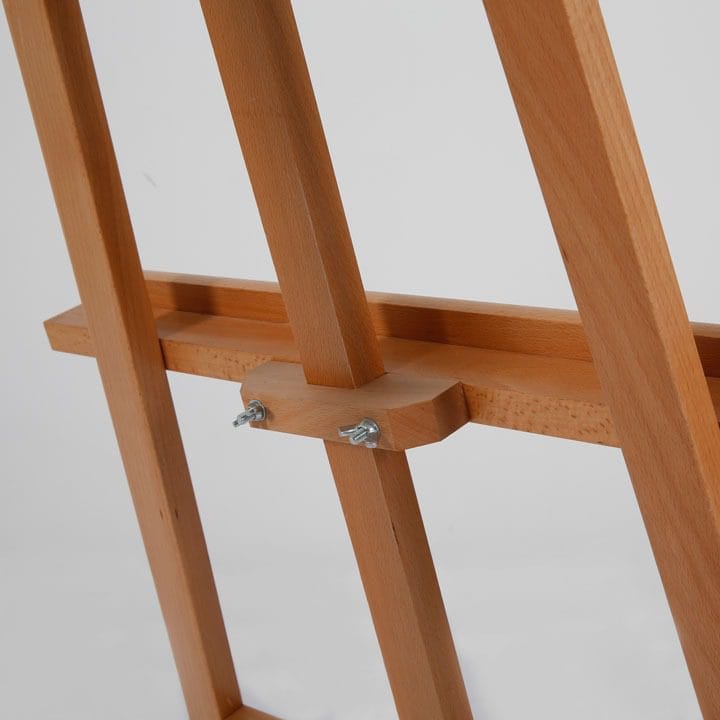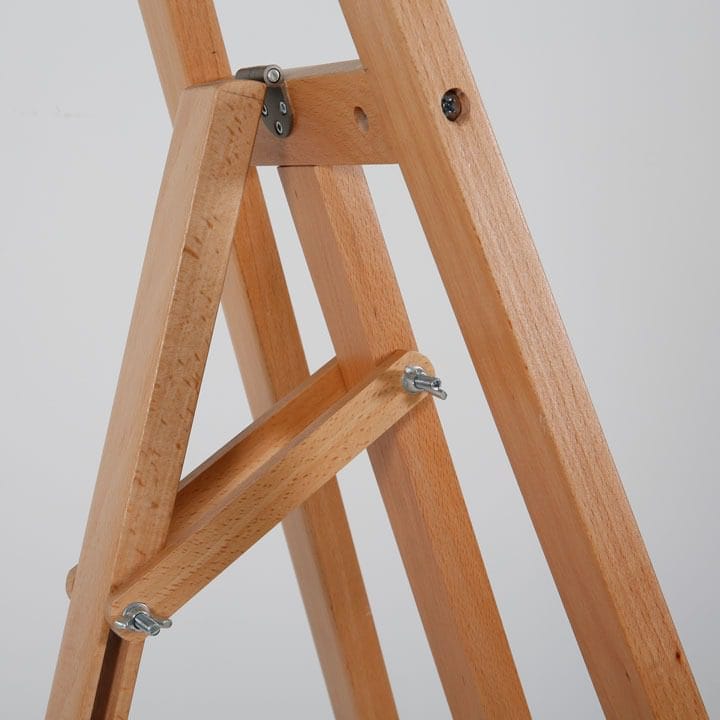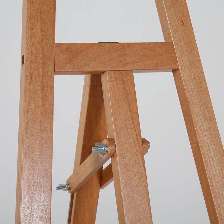 Das helle Buchenholz verleiht der Staffelei ein zeitloses und ästhetisch ansprechendes Erscheinungsbild, das in verschiedenen Umgebungen, sei es im Büro, im Kunststudio oder auf Ausstellungen, gut zur Geltung kommt.