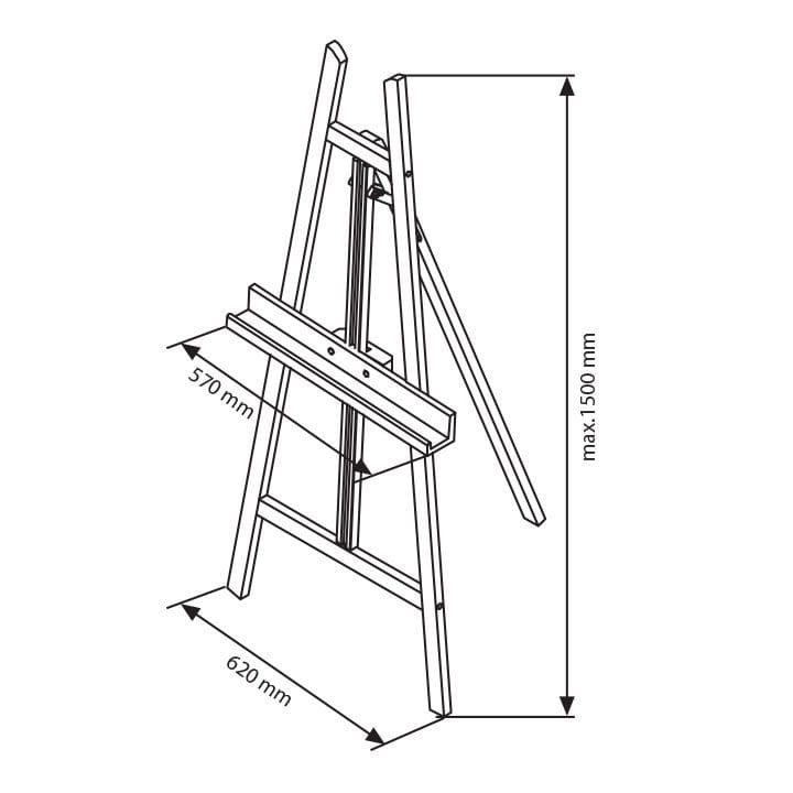 Die Staffelei kann Tafeln oder Leinwände mit einer maximalen Größe von A0 (841 x 1189 mm) oder kleiner aufnehmen. Dies ermöglicht es Ihnen, auch größere Präsentationen oder Kunstwerke stilvoll zu zeigen.