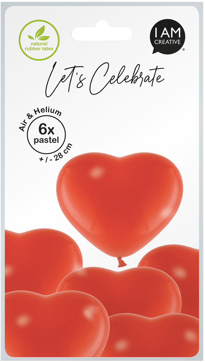 Die I AM CREATIVE Ballons in Herzform (27 cm, rot) sind perfekt für jede Feier. Im Set sind 6 langlebige Ballons enthalten, ideal für romantische Anlässe und Dekoration.