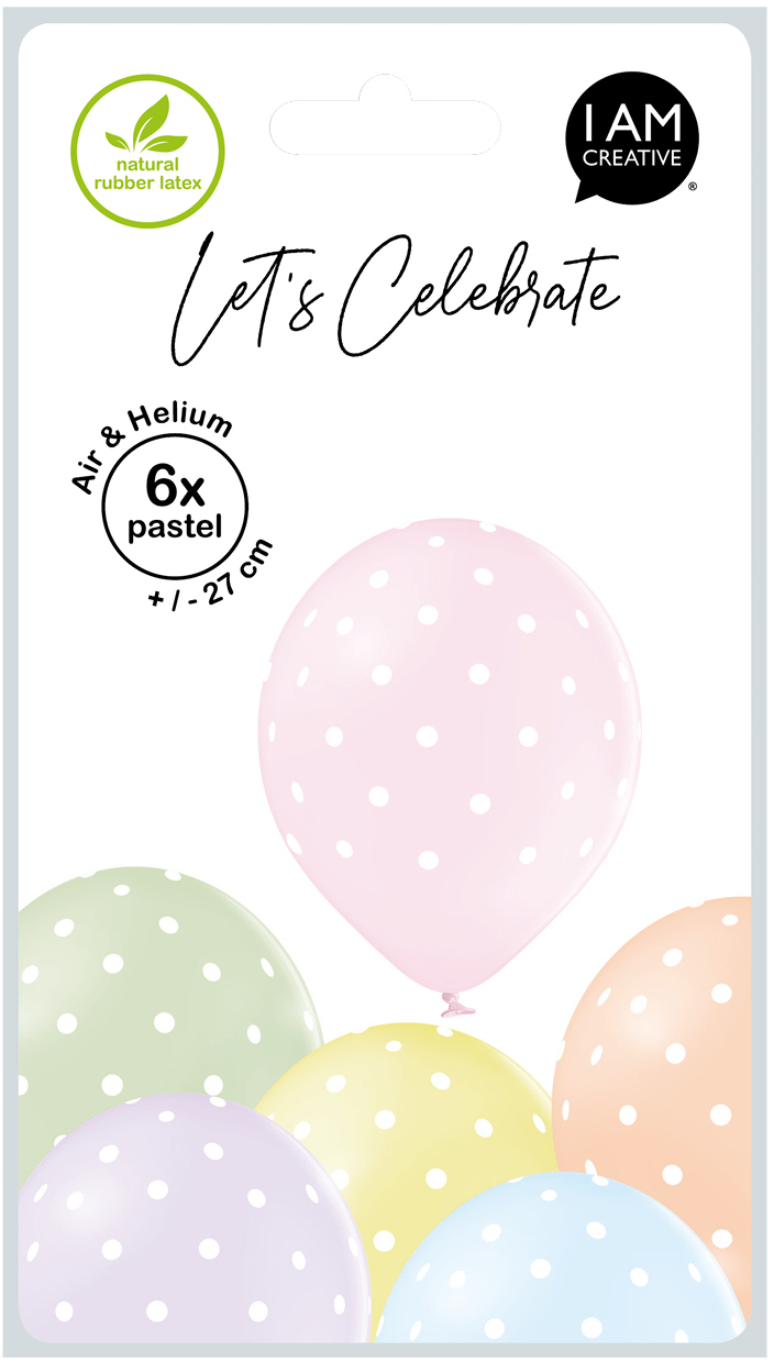 I AM CREATIVE Ballons kleine Punkte 27cm 1000-1056 pastell 6 Stück