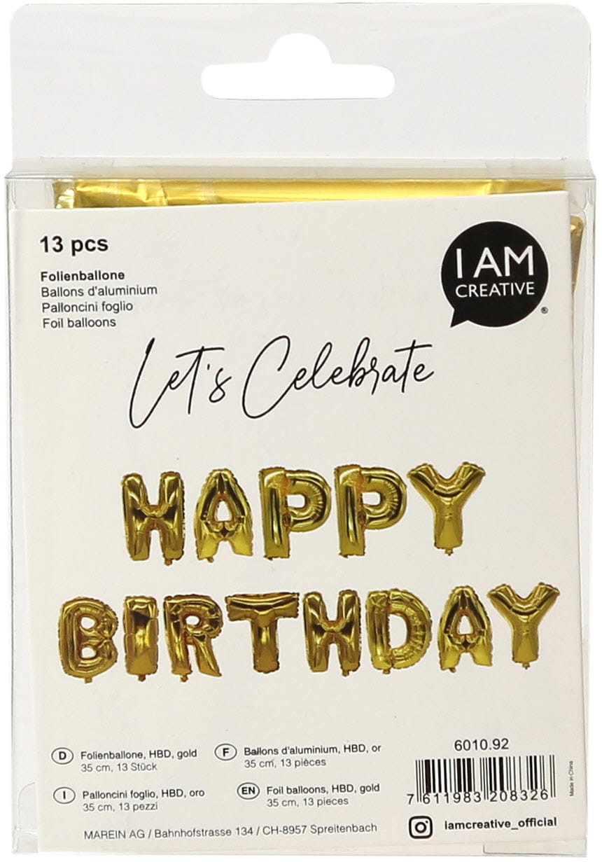 Wenn es Zeit zum Feiern ist, darf dieser Happy Birthday-Folienballon von I AM CREATIVE nicht fehlen. Egal ob Geburtstag, Hochzeit oder Neujahr – mit diesen glänzenden Folienballons kannst du jederzeit die perfekte Atmosphäre schaffen.