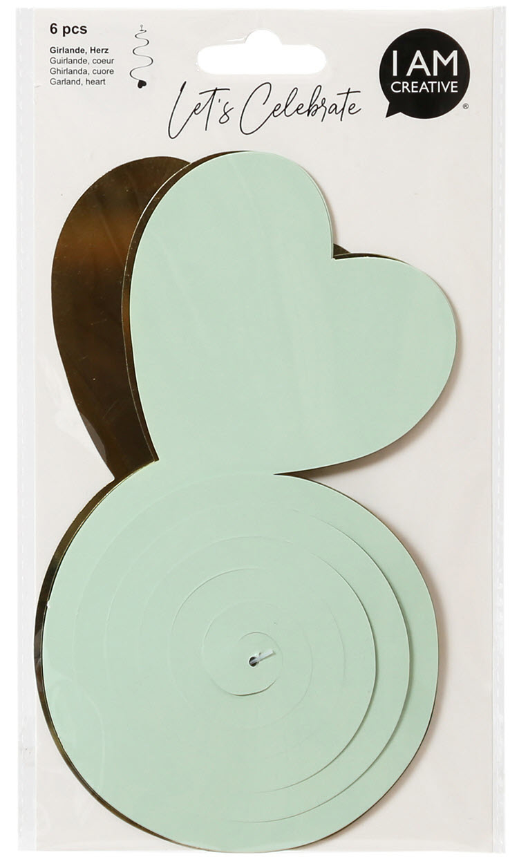 Verleihen Sie Ihren Feierlichkeiten einen Hauch von Eleganz und Kreativität mit der I AM CREATIVE Girlande in Herzform. Diese bezaubernde Girlande ist in einem trendigen Mintgrün mit goldenen Akzenten gestaltet und misst beeindruckende 70 cm in der Länge. Sie kommt im praktischen Set von 6 Stück, sodass Sie ausreichend Material für verschiedene Dekorationsideen haben.