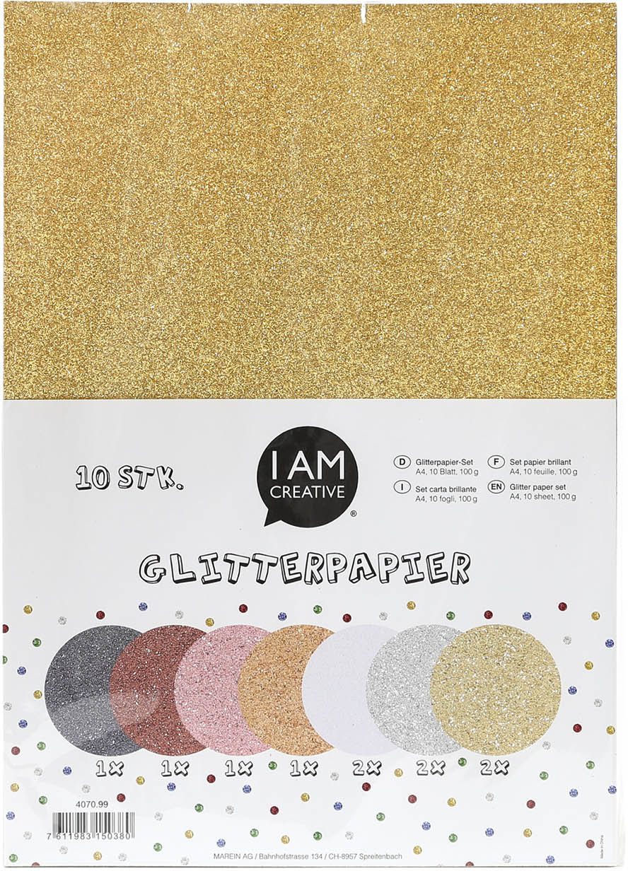 Das I AM CREATIVE Glitterpapier A4 4070.99 in multicolor ist die perfekte Wahl für kreative Köpfe, die ihren Bastelprojekten einen funkelnden Glanz verleihen möchten. Mit 10 Blatt hochwertigem Glitterpapier in der Grösse A4 und einem Gewicht von 100 g/m² bietet dieses Set eine hervorragende Grundlage für eine Vielzahl von Anwendungen. Egal, ob Sie Geschenke verpacken, Karten gestalten oder Dekorationen für besondere Anlässe kreieren möchten – dieses Glitterpapier wird Ihre Ideen zum Strahlen bringen.