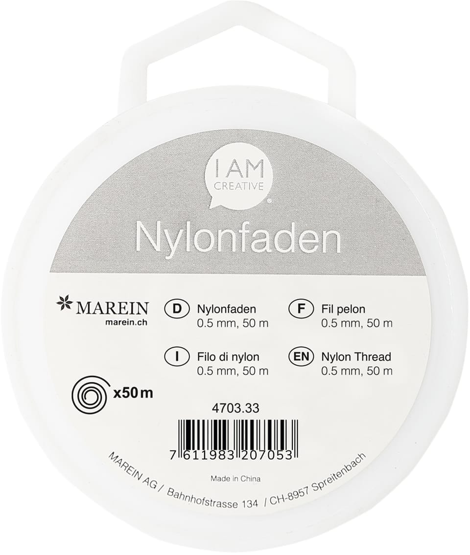 Der Nylonfaden zeichnet sich durch seine Stabilität und Zuverlässigkeit aus. Mit einem Durchmesser von 0,5 mm ist er robust genug, um auch etwas schwerere Gegenstände sicher zu tragen. Die grosszügige Länge von 50 m gibt Ihnen ausreichend Spielraum für verschiedenste Bastel- und DIY-Ideen.