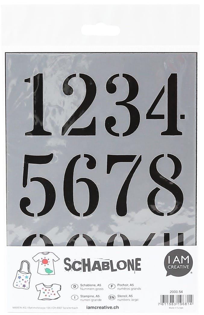 Die Schablone Nummern, gross ist ein unverzichtbares Werkzeug für alle kreativen Köpfe, Bastelfans und Deko-Enthusiasten. Mit ihrer hochwertigen Verarbeitung, den vielseitigen Designs und der einfachen Handhabung wird sie Ihnen bei zahlreichen Projekten treue Dienste leisten. Holen Sie sich jetzt Ihre Schablone und lassen Sie Ihrer Kreativität freien Lauf!
