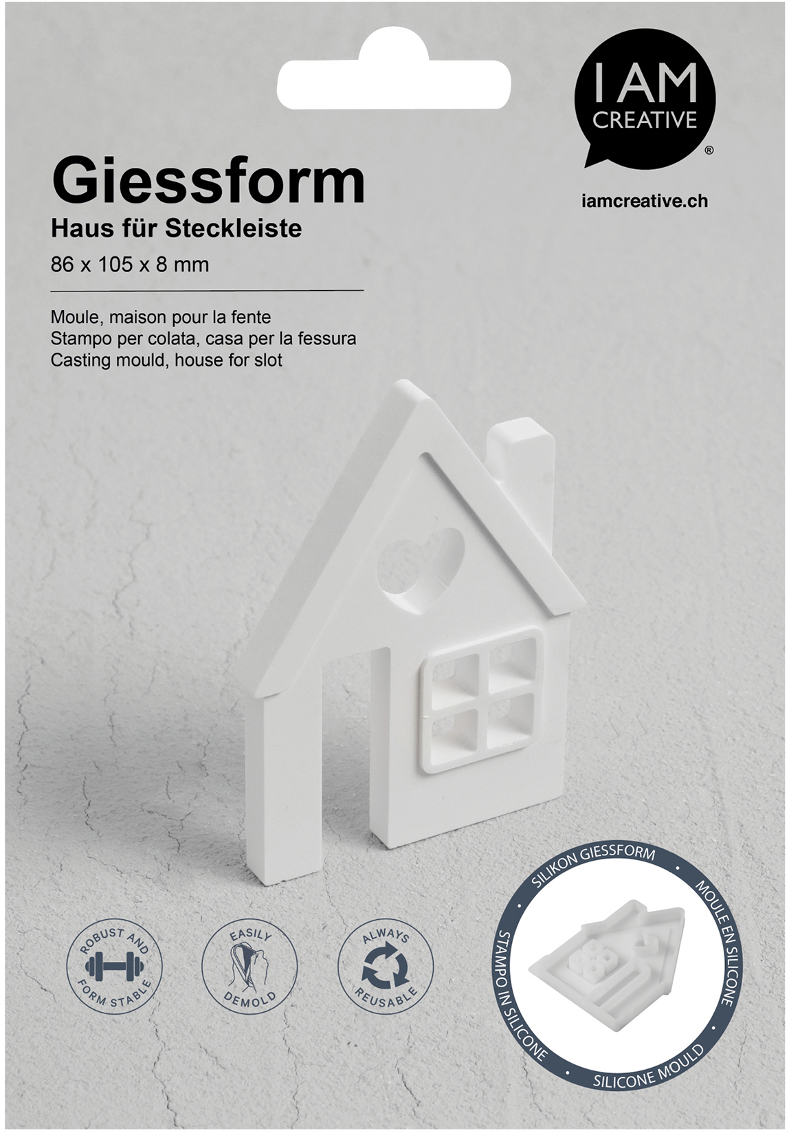 Die I AM CREATIVE Silikon Giessform 1704.36 ist die perfekte Wahl für kreative Bastler und Heimwerker, die auf der Suche nach einer innovativen Lösung sind, um individuelle Steckleisten in Form eines Hauses zu gestalten. Diese vielseitige Giessform ermöglicht es Ihnen, Ihrer Kreativität freien Lauf zu lassen und einzigartige Dekorationselemente zu kreieren, die Ihrem Wohnraum eine persönliche Note verleihen.