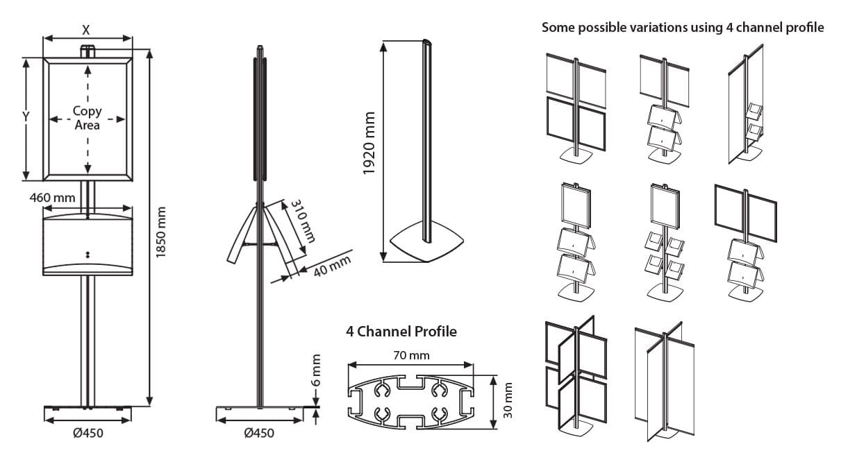 Der Infoständer Brina hebt sich durch seine Fähigkeit hervor, verschiedene Modelle und Inhalte effektiv zu präsentieren. Mit speziell konzipierten Rahmen für den Einsatz in 25-mm-Profilen im Hoch- oder Querformat bietet er vielfältige Möglichkeiten, um Ihre Informationen ansprechend darzustellen.