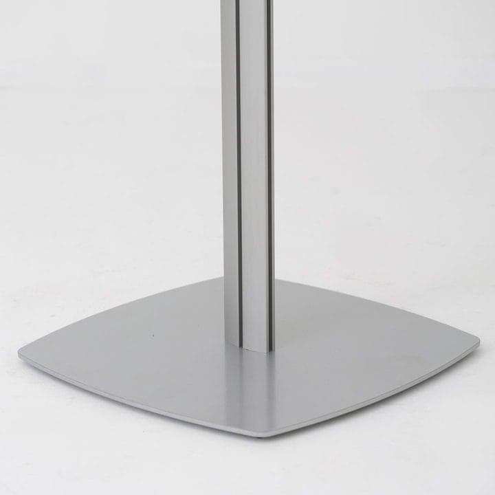 Die Standfestigkeit des Infoständers wird durch den massiven Stahlfuß mit einem Gewicht von 10 kg gewährleistet. Dies verleiht dem Infoständer Stabilität und Sicherheit, sodass er fest an seinem Platz bleibt und Ihre Präsentationen optimal geschützt sind.