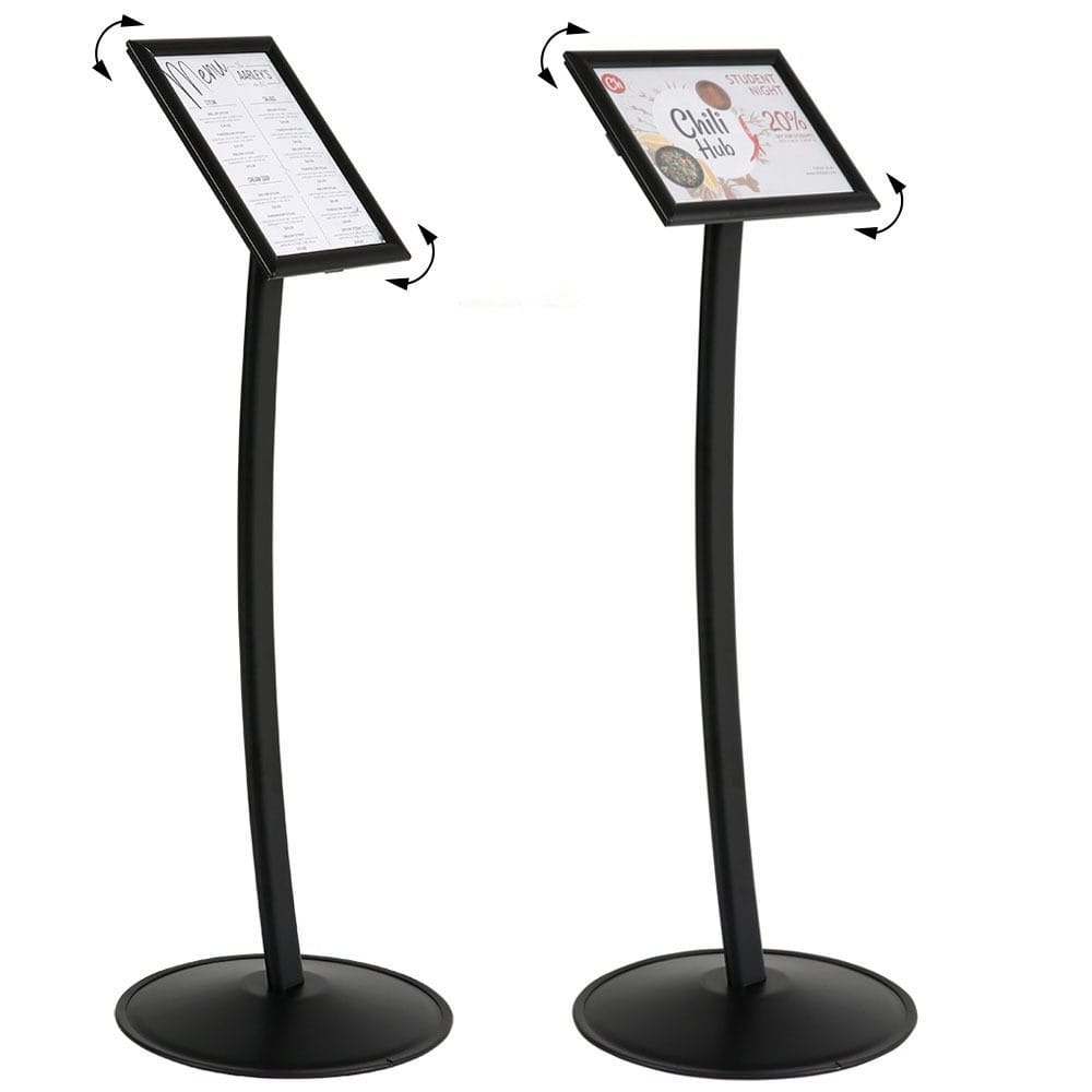 Der gebogene Infoständer in Schwarz ist die perfekte Wahl, um Ihre Informationen und Botschaften sowohl drinnen als auch draußen stilvoll und effektiv zu präsentieren. Er vereint Funktionalität mit ästhetischem Design und ist eine großartige Ergänzung für jede Umgebung, in der wichtige Informationen geteilt werden sollen.