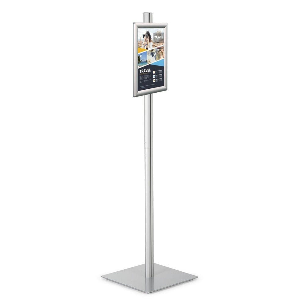 Dank des massiven Stahlsockels steht der Infoständer «Luis» äußerst stabil und fest. Diese robuste Konstruktion gewährleistet, dass der Infoständer sicher in verschiedenen Umgebungen und Bedingungen platziert werden kann, ohne dabei an Standfestigkeit zu verlieren.
