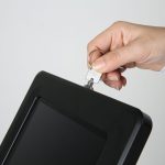 Ein wichtiges Merkmal dieses Ständers ist die Sicherheit, die er bietet. Ihr Tablet wird durch ein Schloss gesichert, um Diebstahl oder unbefugte Zugriffe zu verhindern. Darüber hinaus schützt der Rahmen den Home-Button Ihres Tablets, während es sicher im Ständer positioniert ist.