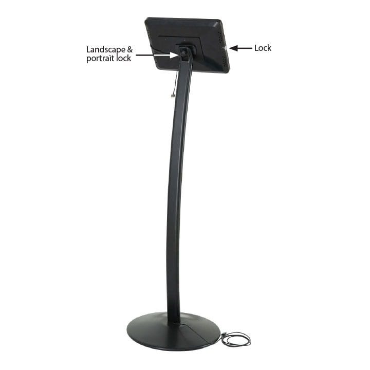 Ein wichtiges Merkmal dieses Ständers ist die Sicherheit, die er bietet. Ihr Tablet wird durch ein Schloss gesichert, um Diebstahl oder unbefugte Zugriffe zu verhindern. Darüber hinaus schützt der Rahmen den Home-Button Ihres Tablets, während es sicher im Ständer positioniert ist.