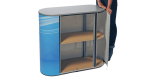 Zur Ergänzung des ISOframe Systems sind freistehende Theken mit einer Höhe von 91 cm sowie Anbautheken mit 89 cm Höhe verfügbar. Diese bieten nicht nur zusätzliche Präsentationsfläche, sondern auch eine praktische Möglichkeit zur Aufbewahrung von Flyern, Produkten oder anderen Materialien.