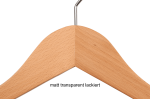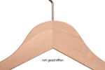Die Kleiderbügel aus Buchenholz sind in zwei verschiedenen Ausführungen erhältlich. Die transparent lackierte Ausführung verleiht dem Holz eine glatte und glänzende Oberfläche, die das natürliche Muster des Holzes betont und gleichzeitig schützt. Die roh geschliffene Ausführung betont die ursprüngliche Textur und Farbe des Buchenholzes und verleiht den Bügeln ein rustikales, naturbelassenes Aussehen.