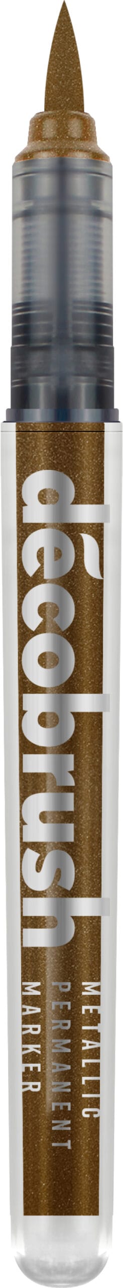Die DécoBrush Metallic-Marker sind mit 2,4 ml ungiftiger Farbe auf metallischen Pigmentenbasis gefüllt, die schwarze und weisse Oberflächen hervorragend abdecken. Dank der innovativen «Liquid Ink»-Technologie ermöglichen sie einen vollen Verbrauch der enthaltenen Farbe im Gegensatz zu herkömmlichen Stiften. Die DécoBrush Metallic-Marker haften dauerhaft, lichtbeständig und wasserfest auf verschiedenen Oberflächen wie Papier, Holz, Keramik, Glas, Metall und Kunststoff. Besonders geeignet sind sie für etwas rauere Oberflächen.