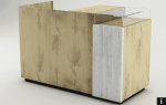 Diese Verkaufstheke ist ein echter Blickfang in jedem Einzelhandelsgeschäft oder auf Veranstaltungen. Mit ihrer Eichenoptik und der weiß gestrichenen Holzoptik an der Front strahlt sie moderne Eleganz aus.