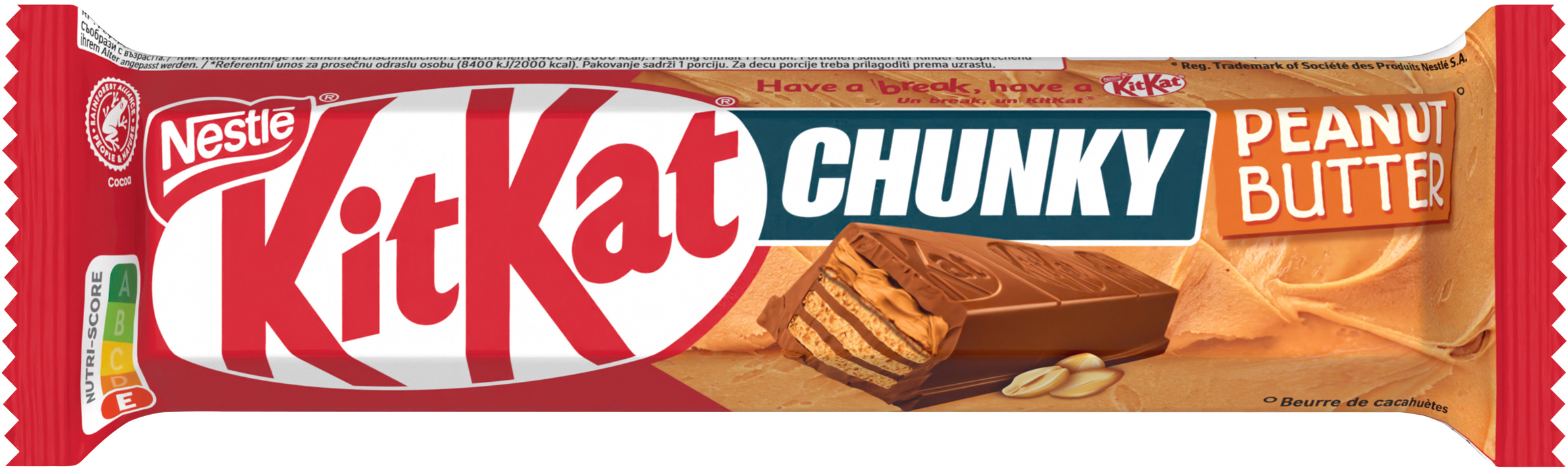 Die knackig luftige Waffel von KitKat® Chunky, gefüllt mit Erdnüssen und umhüllt von leckerer Schokolade. Diese perfekte Balance aus knusprig und zart, schmeckt grossartig und ist bestens geeignet für den grossen Hunger zwischendurch!