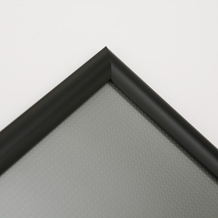 Die Rahmenecken auf Gehrung verleihen dem Rahmen eine professionelle und elegante Optik. Dieser Detailaspekt sorgt für einen hochwertigen Gesamteindruck und zeigt die Sorgfalt und Qualität, die in die Präsentation Ihrer Informationen gesteckt werden.