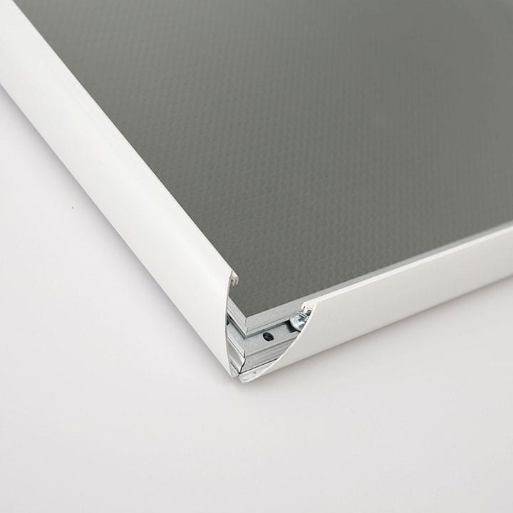 Die graue Rückwand des Rahmens bildet einen angenehmen Kontrast zum Poster und hilft dabei, die Aufmerksamkeit auf den Inhalt zu lenken. Dadurch wird sichergestellt, dass Ihre Botschaft oder Werbung optimal wahrgenommen wird.
