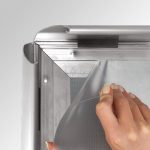 Der «SnapFrame» wird aus umweltfreundlichen Materialien hergestellt und verfügt über ein patentiertes SnapFrame System, das eine sichere und stabile Befestigung gewährleistet. So können Sie sich darauf verlassen, dass Ihre Poster sicher präsentiert werden.