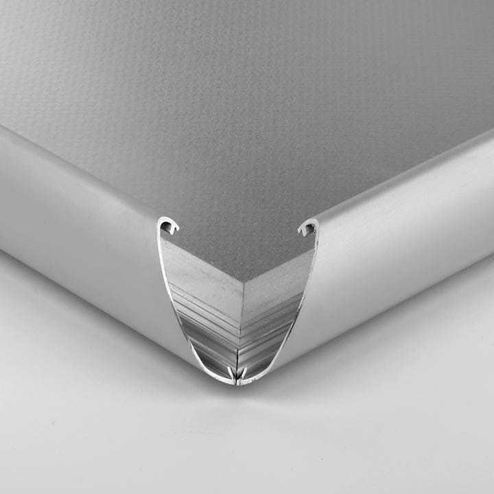 Der Rahmen des «SnapFrame» besteht aus hochwertigem Aluminium und verfügt über präzise gearbeitete Ecken auf Gehrung. Diese Konstruktion nicht nur ästhetisch ansprechend, sondern garantiert auch Stabilität und Langlebigkeit, um Ihre Poster optimal zu schützen.