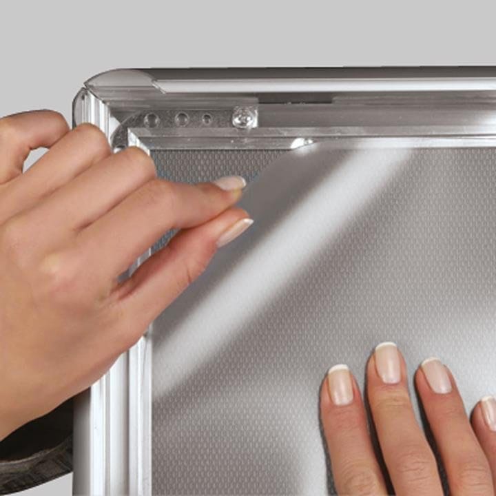 Der «SnapFrames» Rahmen ist mit einer Anti-Reflex PET Schutzfolie ausgestattet, die Ihre Poster vor Beschädigungen schützt und unerwünschte Reflexionen reduziert. So bleiben Ihre Inhalte gut lesbar und geschützt.