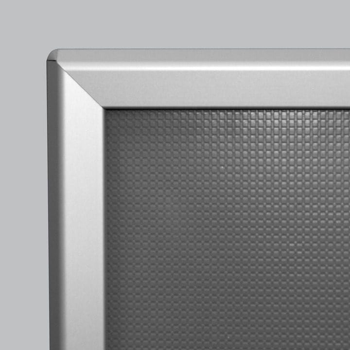 Die graue Rückwand des Rahmens bildet einen Kontrast, der Ihre Poster effektvoll hervorhebt und ihre Wirkung verstärkt. Dies trägt dazu bei, dass Ihre Botschaften noch besser zur Geltung kommen.
