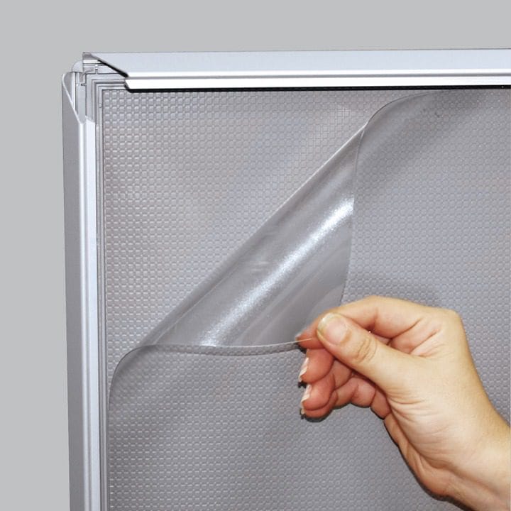 Der Rahmen ist mit einer speziellen Anti-Reflex PET Schutzfolie ausgestattet, die störende Reflexionen minimiert und die Lesbarkeit Ihrer Poster verbessert. Ihre Botschaften bleiben somit klar und gut sichtbar für Ihre Zielgruppe.