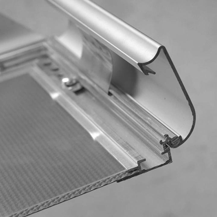 Der «SnapFrames» Rahmen verfügt über eine spezielle Anti-reflex PET Schutzfolie, die Ihre Poster vor Beschädigungen schützt und störende Reflexionen reduziert. Dadurch wird eine klare Sichtbarkeit Ihrer Botschaft gewährleistet, ohne beeinträchtigt zu werden.