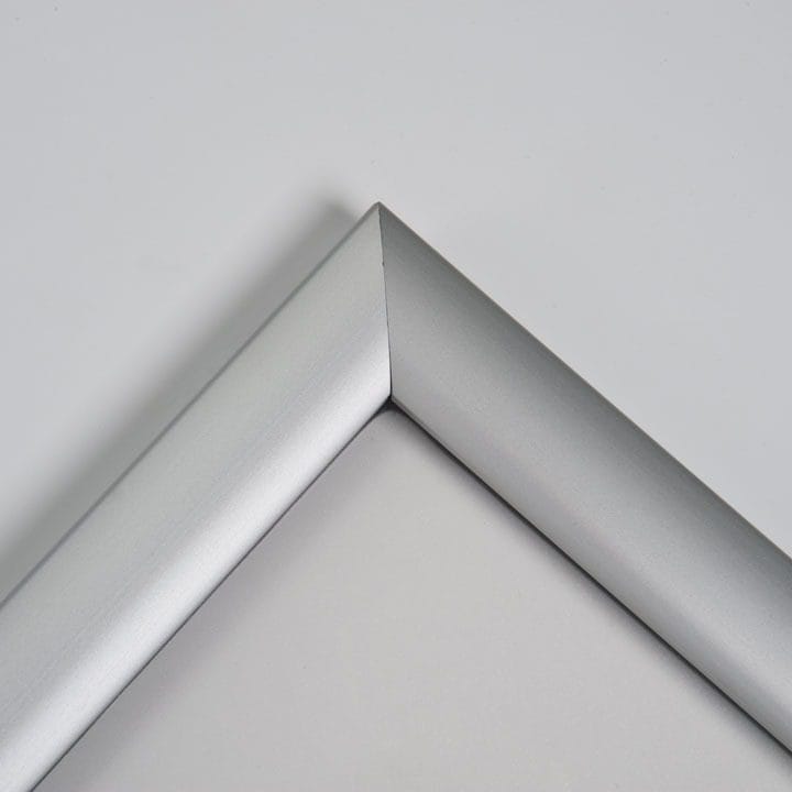 Die Montage des Bilderrahmens ist schnell und unkompliziert, was einen schnellen Austausch Ihrer Poster ermöglicht. Hergestellt aus erstklassigem Aluminium, verfügt der Rahmen über präzise gearbeitete Ecken auf Gehrung, die nicht nur Stabilität, sondern auch eine ästhetische Optik gewährleisten.