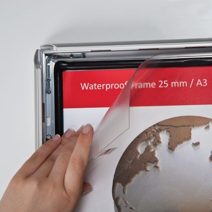 Entdecken Sie die Kombination von Widerstandsfähigkeit und professionellem Design unserer wasserfesten Bilderrahmen mit dem «Click Clack» Klapprahmen System. Verleihen Sie Ihren Postern und Werbematerialien eine überzeugende Präsentation im Freien, unabhängig von den Witterungsbedingungen. Mit unseren Bilderrahmen setzen Sie Ihre Botschaften gekonnt in Szene.