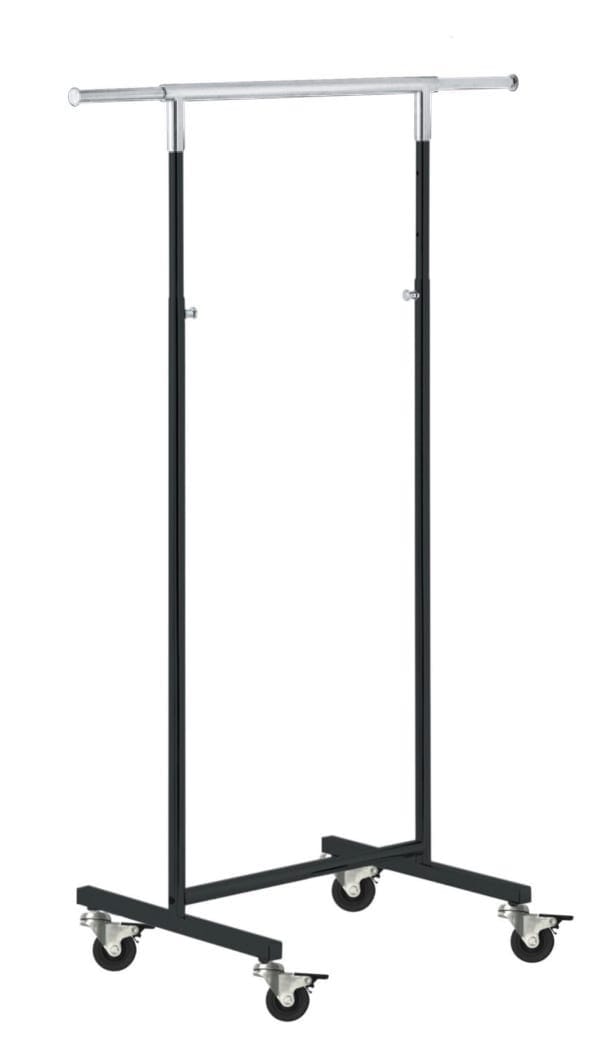 Stilvoller Kontrast: Der «Mini» Kleiderständer Rollständer L60cm in Schwarz mit verchromter oberer Stange
