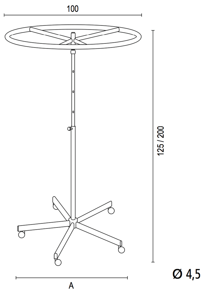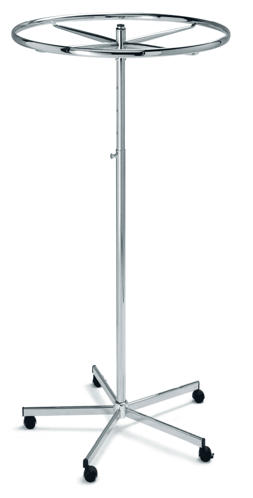 Der runde Kleiderständer D100 ist die perfekte Wahl, um Kleidungsstücke stilvoll und flexibel zu präsentieren. Mit seinem einzigartigen Design, den praktischen Stahlrollen, der Höhenverstellbarkeit und der hochwertigen Verchromung ist dieser Ringständer ein beeindruckendes Hilfsmittel für ansprechende Präsentationen in verschiedenen Umgebungen.