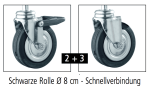 Mit fünf Stahlrollen, davon zwei mit Bremsen, bietet der Ringständer nicht nur eine stabile Positionierung, sondern auch die Möglichkeit zur einfachen Bewegung. Die Rollen haben einen Durchmesser von 8 cm und ermöglichen eine reibungslose Mobilität.
