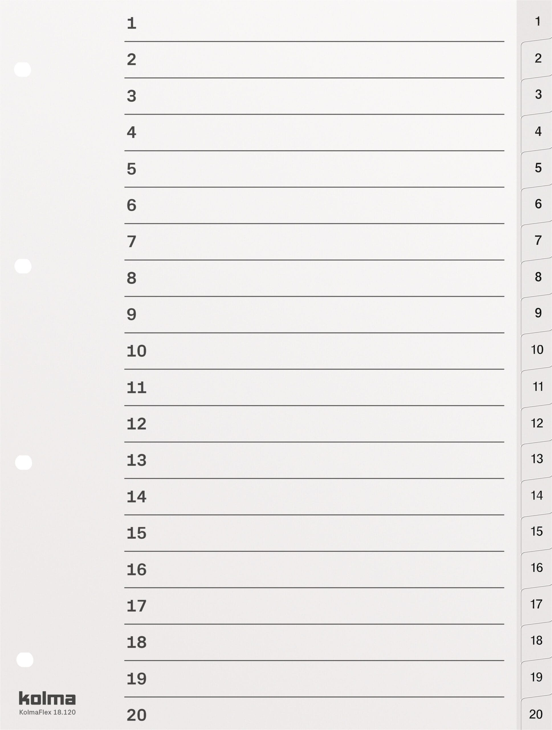 Die KOLMAFLEX Kunststoff-Register eignen sich nicht nur für den Einsatz im Büro, sondern auch für das Sortieren von Unterlagen zu Hause, in der Schule oder an anderen Orten. Ob für Rechnungen, Verträge, Notizen oder andere Papiere – diese Register helfen Ihnen dabei, stets den Überblick zu behalten.