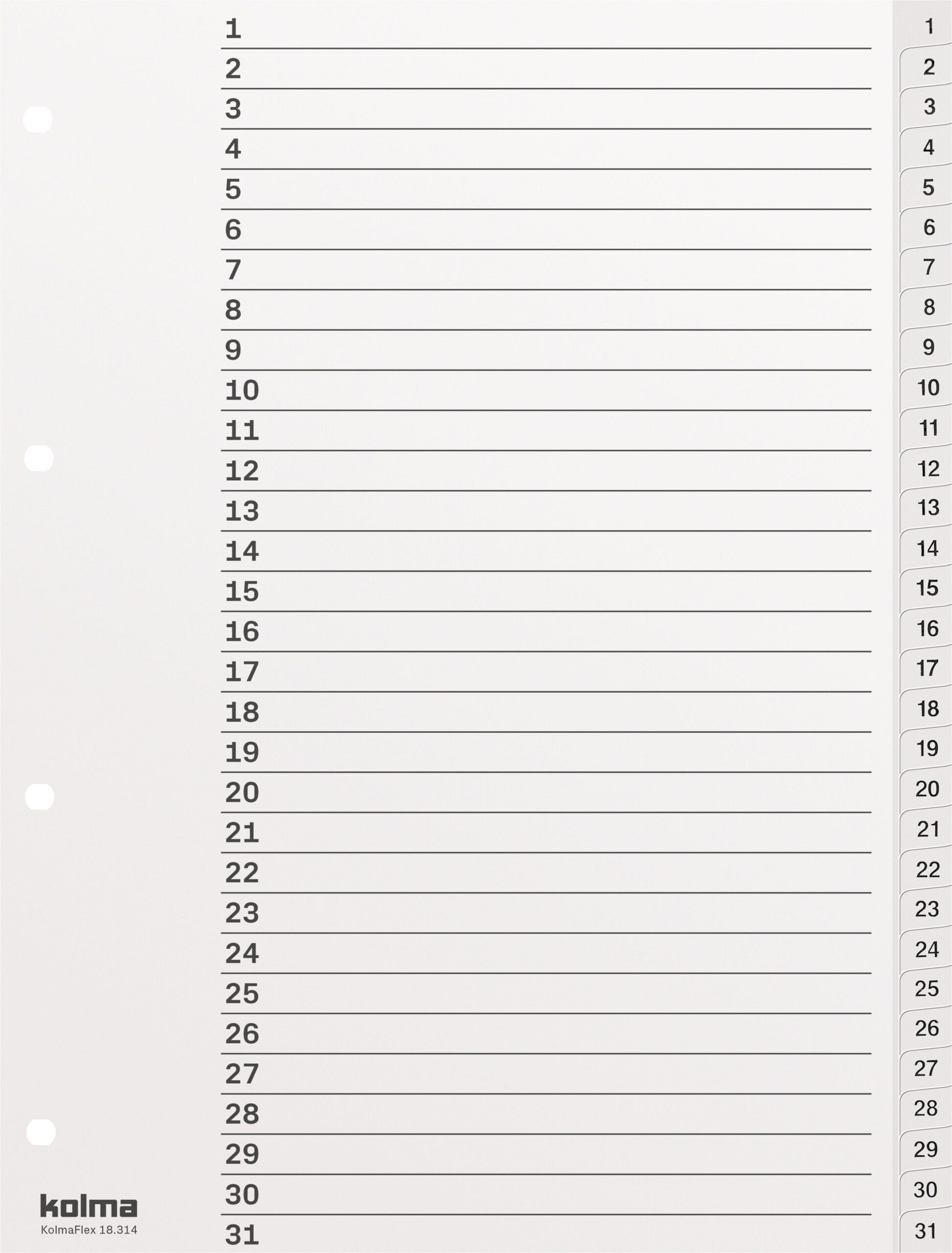Sorgen Sie für eine übersichtliche und strukturierte Ablage von Dokumenten mit den hochwertigen KOLMAFLEX Kunststoff-Registern. Das robuste KolmaFlex Material garantiert Langlebigkeit und eine erstklassige Verarbeitung, die Ihre Unterlagen optimal schützt.