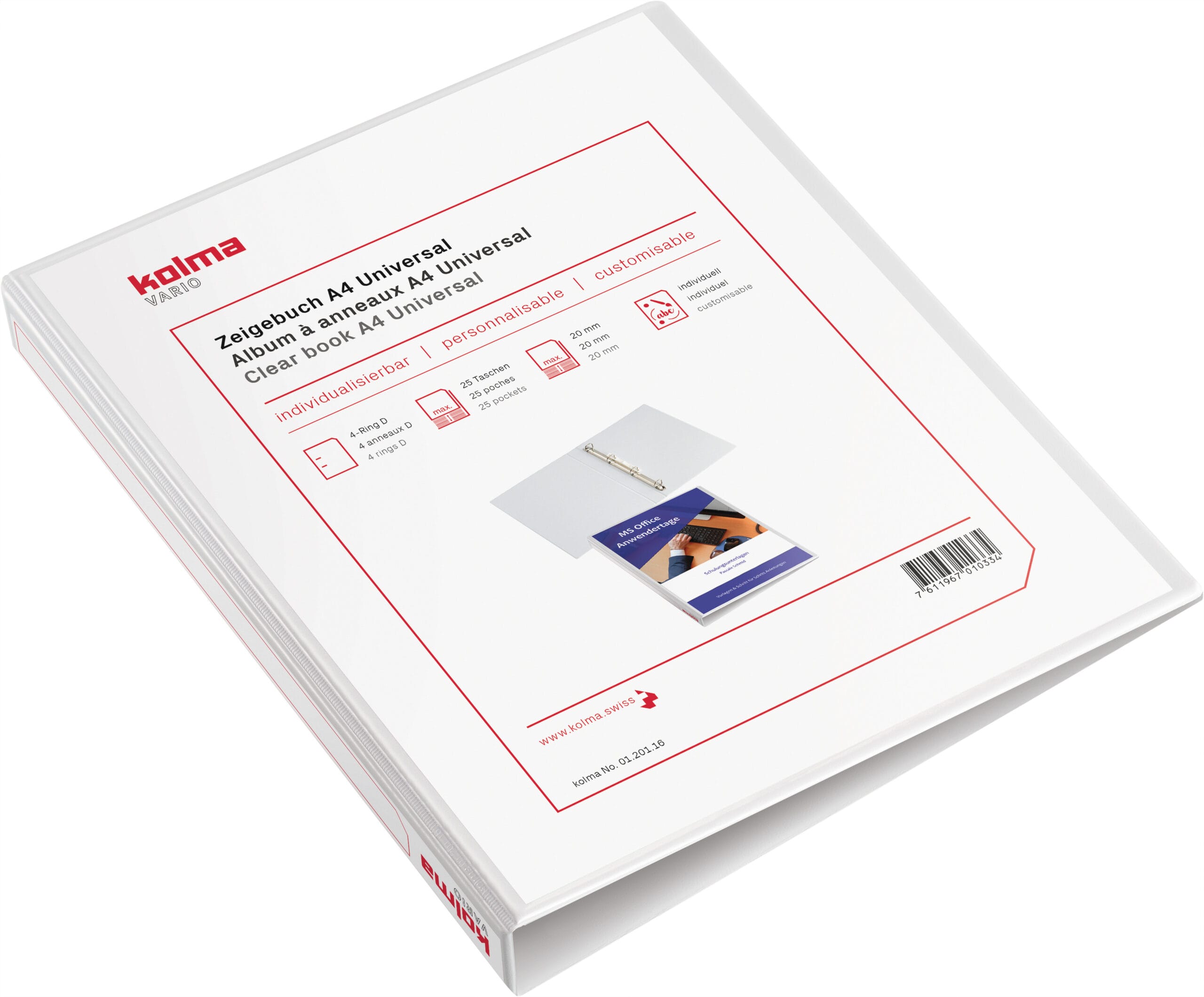 Der Präsentationsordner Vario mit 4-Ring Mechanik ist die ideale Lösung für alle, die Ihre Dokumente übersichtlich und professionell präsentieren möchten. Mit seiner hochwertigen Verarbeitung, der praktischen Ringmechanik und der individuellen Anpassbarkeit wird er schnell zum unverzichtbaren Begleiter in Ihrem Business-Alltag.