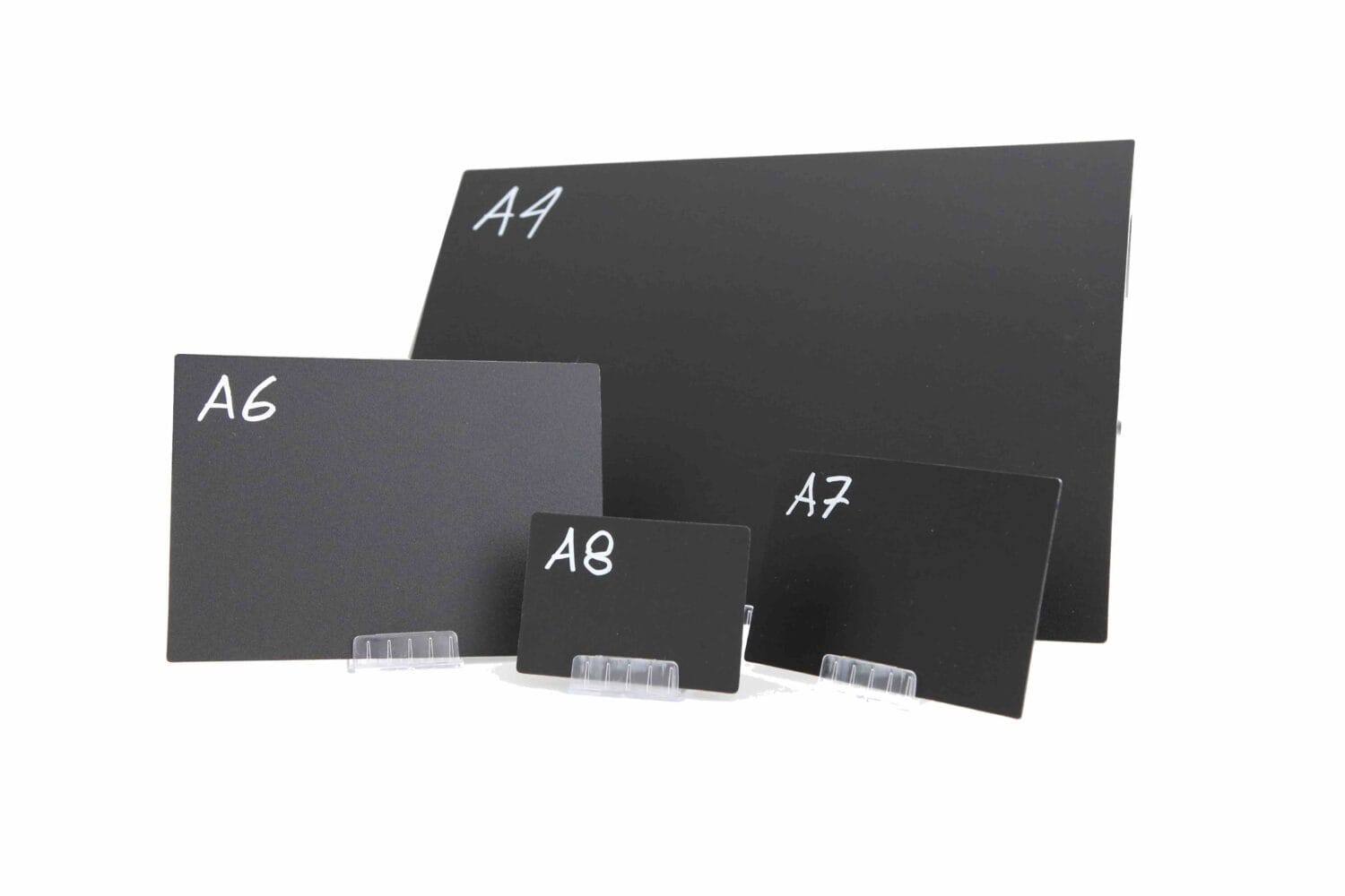 – Vielseitige Größen: Erhältlich in A8, A7, A6, A5 und A4, passt sich die Tafel perfekt Ihren speziellen Anforderungen an.