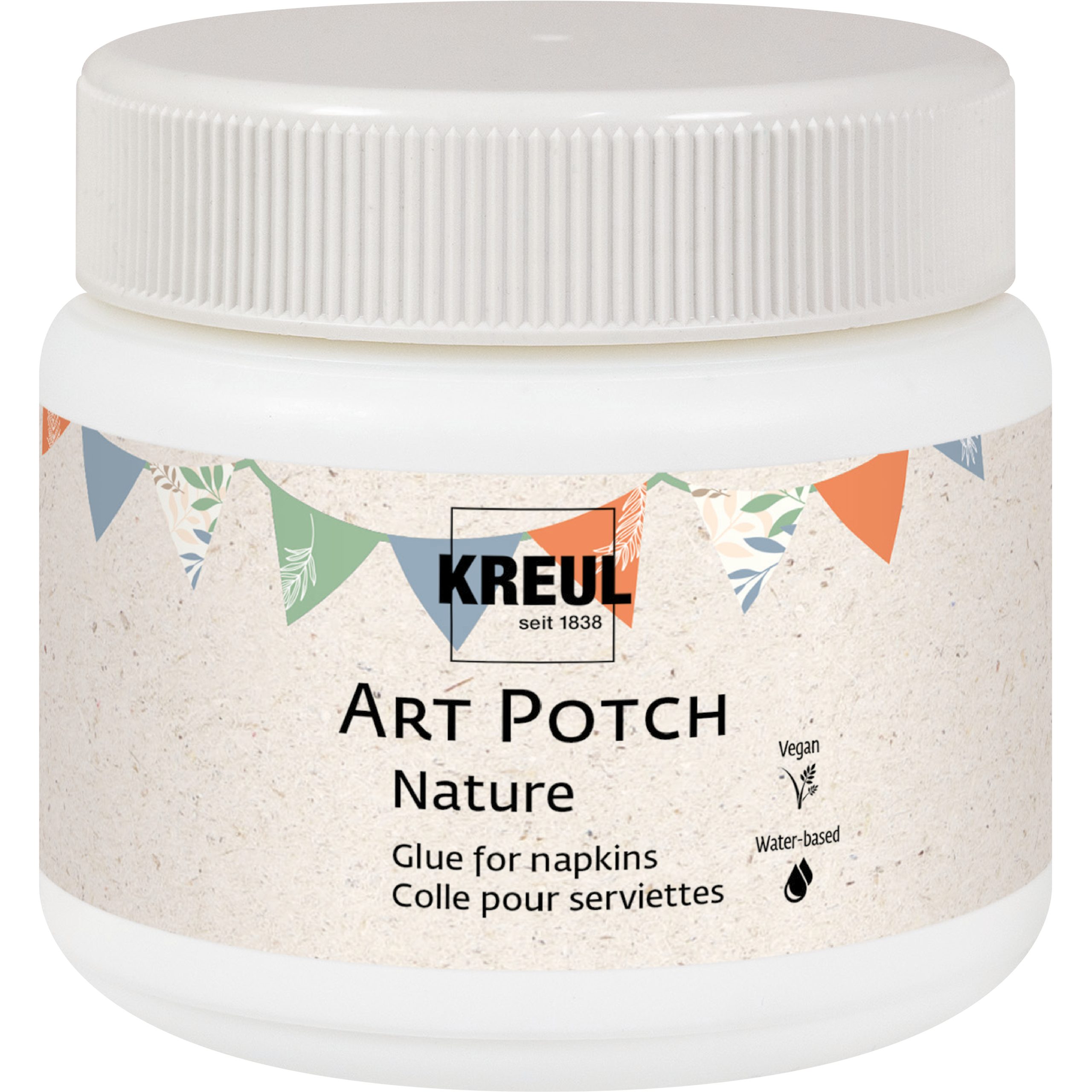 Eine nachhaltige Kleber-Alternative für die Serviettentechnik gesucht? Hier haben wir sie! Der KREUL Art Potch Nature funktioniert auf verschiedenen Oberflächen und trocknet transparent auf. Das Besondere: Die Rezeptur enthält mind. 80 % Rohstoffe natürlichen Ursprungs. Wir verwenden ein innovatives Bindemittel aus nachwachsenden Quellen. Die Dose und der Deckel des 150 ml Gebindes sind aus recyceltem Plastik. Einfach nachhaltig!