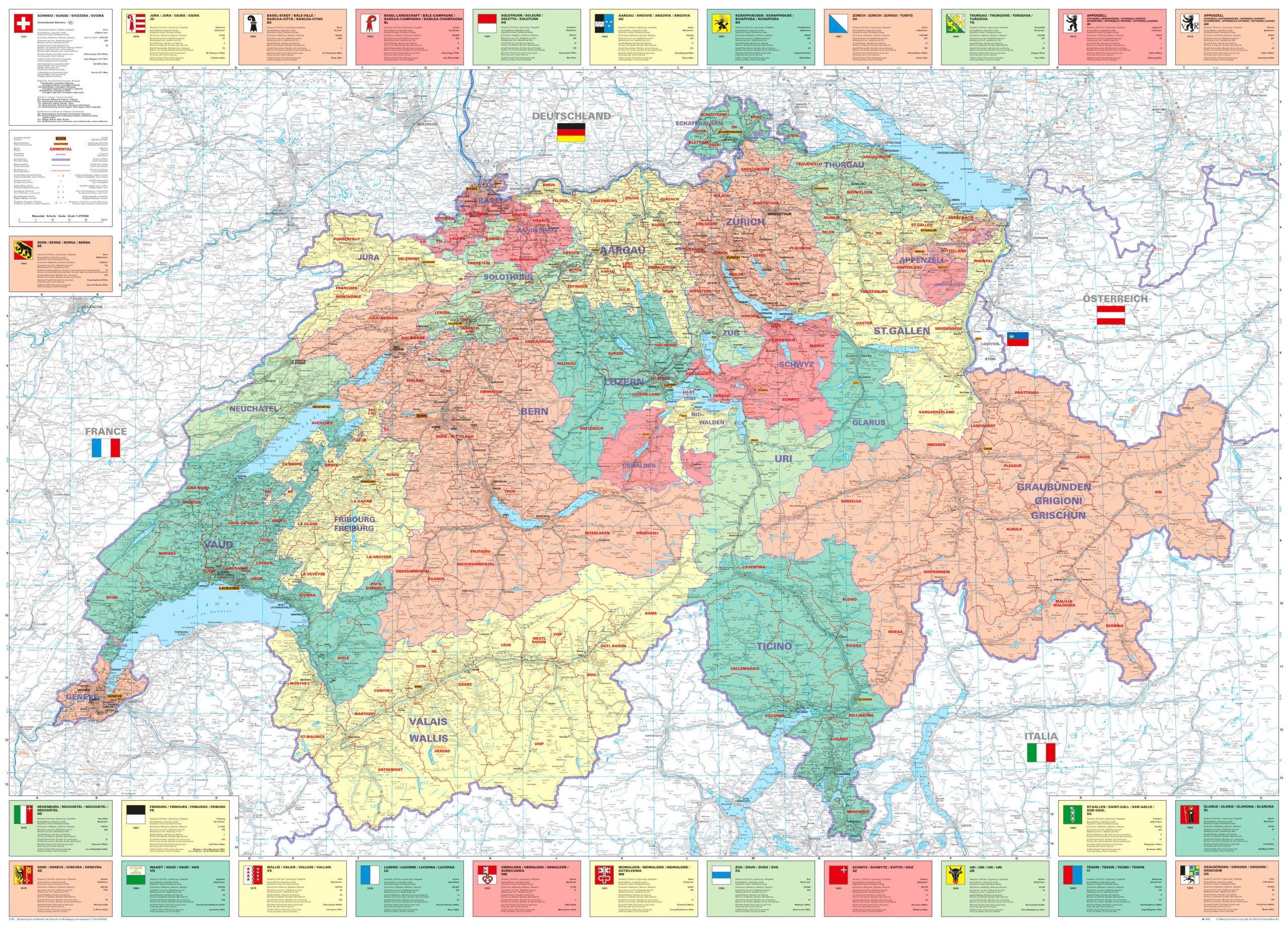 Schweiz Büro- und Organisationskarte Poster, Massstab: 1:275 000 Format: 139 x 99 cm