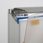 Der rostfreie Klapprahmen ist der Grundstein für die Qualität unseres Kundenstoppers. Das rundumlaufende Gummiband gewährleistet eine effektive wasserfeste Abdichtung. Ihre Werbeinhalte bleiben selbst bei ungünstigem Wetter optimal geschützt und präsentiert. Doch das ist nicht alles.