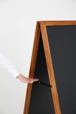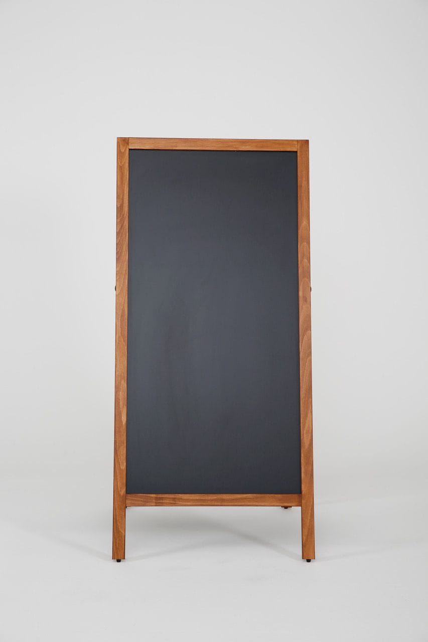 Die zweiseitigen Kundenstopper-Tafeln bestehen aus hochwertigem Massivholz, das speziell für den Außeneinsatz entwickelt wurde. Das robuste Material garantiert Langlebigkeit und eine natürliche Optik, die Ihre Informationen mit Kreidemarkern klar und deutlich präsentiert. Zudem ist die Tafel wetterbeständig und strapazierfähig.