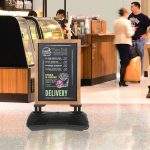 Der zweiseitige Kundenstopper verfügt über eine Kreidetafel, die es Ihnen ermöglicht, Ihre Informationen kreativ mit Kreidemarkern zu gestalten. Die einfache Reinigung der Tafel sorgt dafür, dass Ihre Botschaften stets sichtbar bleiben und Sie flexibel auf Änderungen reagieren können.