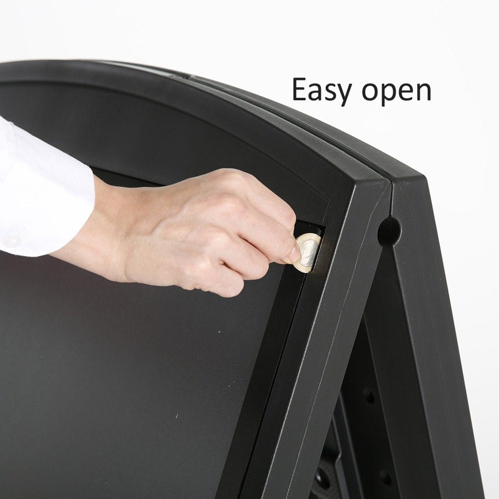 Der Street SignPro Deco ist mit einem Antireflex-Grafikschutz-Objektiv ausgestattet, das klare Sicht auf Ihre Inhalte gewährleistet und Spiegelungen minimiert. Eine versteckte Verriegelung schützt Ihre Poster vor unbefugtem Zugriff.