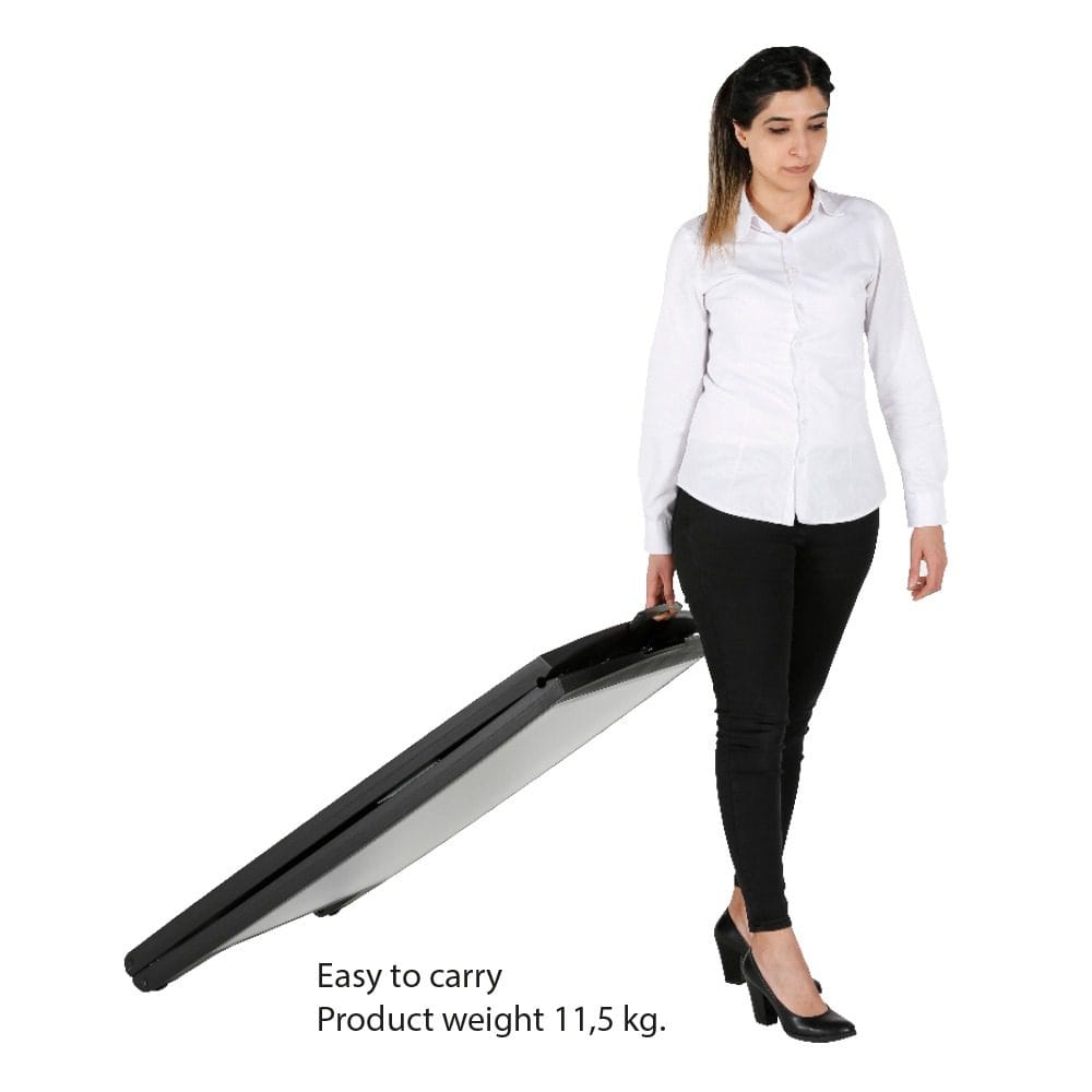 Mit einem Gewicht von 13 kg bietet der Street SignPro Deco ausreichend Stabilität, ohne dass zusätzlich Wasser oder Sand eingefüllt werden müssen. Dies macht ihn nicht nur robust, sondern auch einfach zu handhaben.