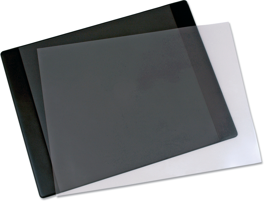Die Schreibunterlage von LÄUFER hat zwei Seitenleisten und eine auswechselbare, blendfreie Klarsichtauflage. Wichtige Informationen wie Notizen und Telefonverzeichnisse liegen geschützt und jederzeit einsehbar auf dem Schreibtisch.