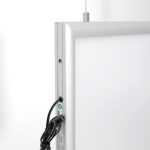 Der doppelseitige LED Leuchtrahmen überzeugt nicht nur durch seine Funktionalität, sondern auch durch seine Vielseitigkeit. Dank des mitgelieferten Seilsets können Sie den Leuchtrahmen auch deckenhängend im Hochformat nutzen. Alternativ ist er freistehend einsetzbar und somit perfekt für verschiedene Bereiche wie Messen, Geschäfte oder Büros geeignet. Die einfache Wandmontage ermöglicht zudem eine unkomplizierte Befestigung.