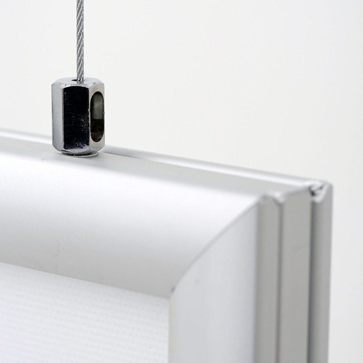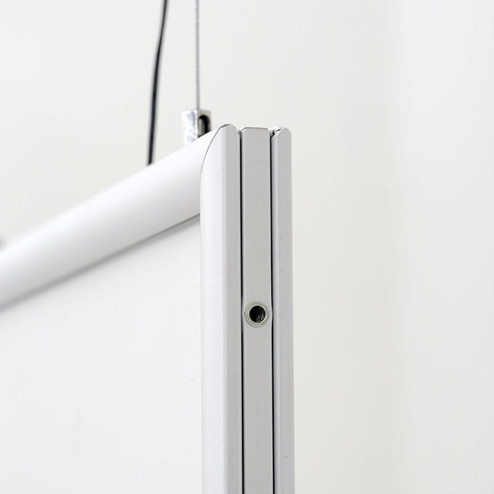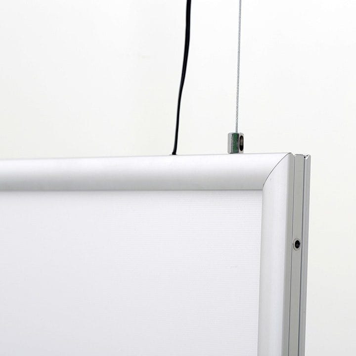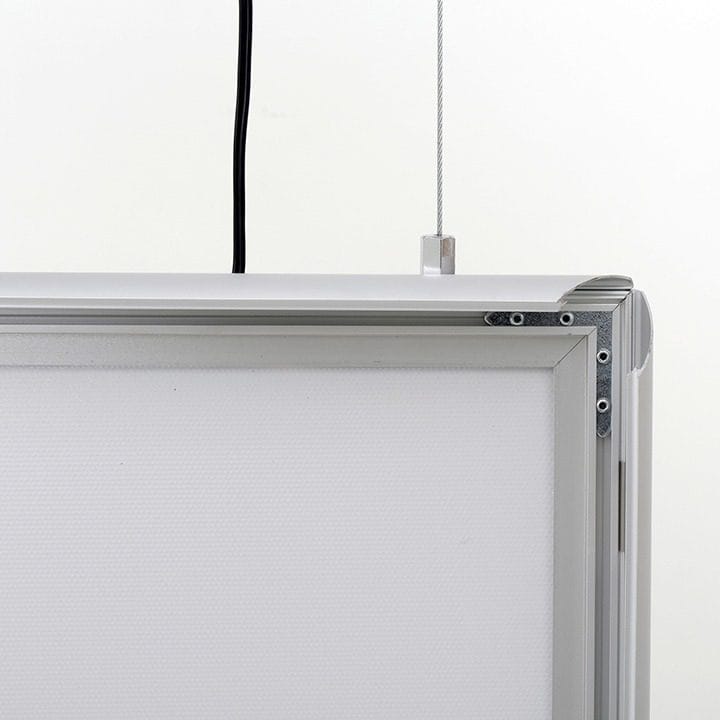 Der doppelseitige LED Leuchtrahmen überzeugt nicht nur durch seine Funktionalität, sondern auch durch seine Vielseitigkeit. Dank des mitgelieferten Seilsets können Sie den Leuchtrahmen auch deckenhängend im Hochformat nutzen. Alternativ ist er freistehend einsetzbar und somit perfekt für verschiedene Bereiche wie Messen, Geschäfte oder Büros geeignet. Die einfache Wandmontage ermöglicht zudem eine unkomplizierte Befestigung.