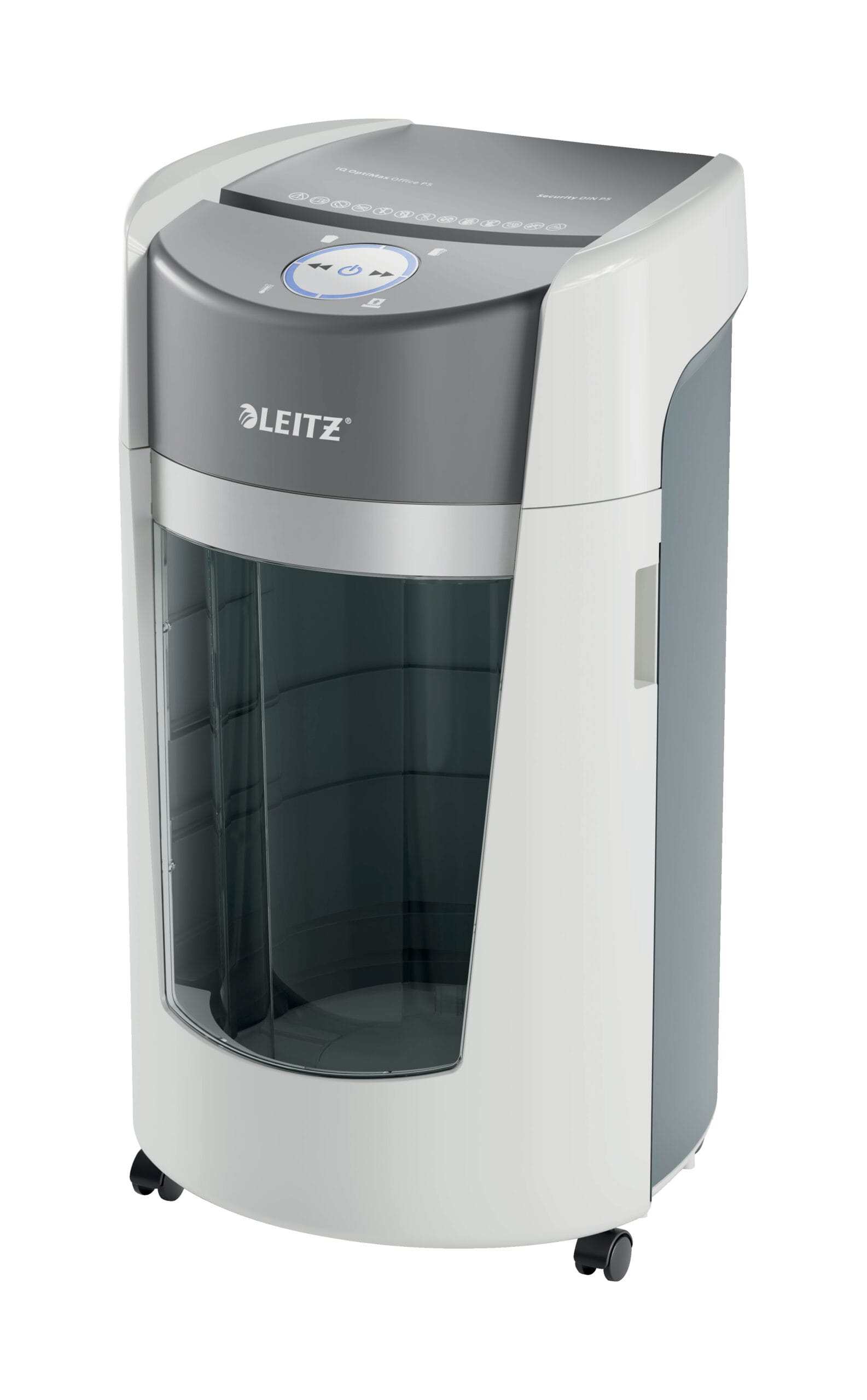 Der Leitz IQ OptiMax verfügt über vier hochwertige Lenkrollen, die es Ihnen ermöglichen, den Aktenvernichter leicht an verschiedene Orte zu bewegen. In elegantem Weiss gehalten fügt sich das schlanke Design nahtlos in jede Büroumgebung ein und überzeugt mit seiner beeindruckenden Langlebigkeit.